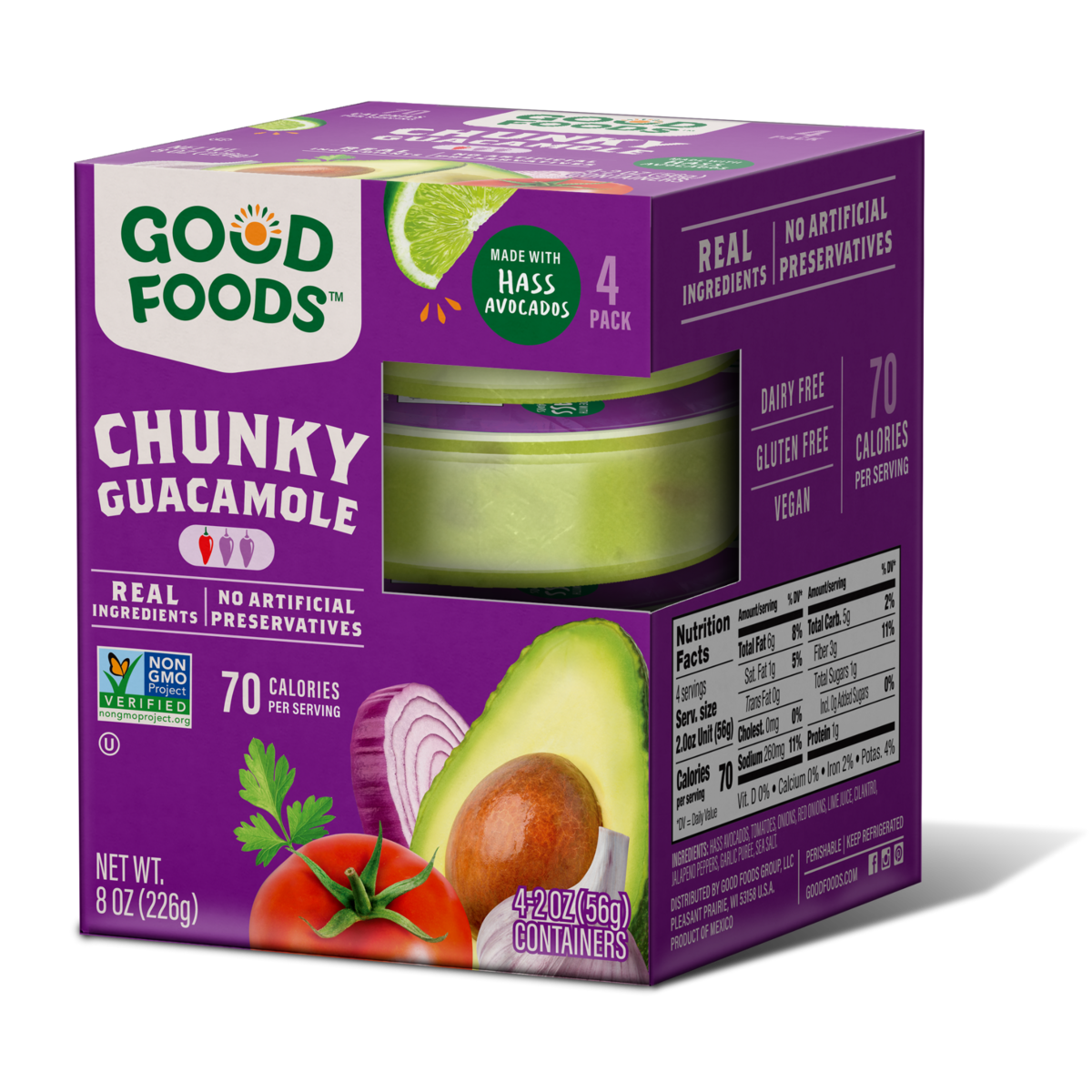 High-quality ingredients are combined to create this delicious guacamole filled with all of the good stuff. Packed with good fats, vitamins and minerals, we deliver guacamole at its purest. With no artificial ingredients or added sugars, this guacamole has that homemade taste you can feel good about eating.