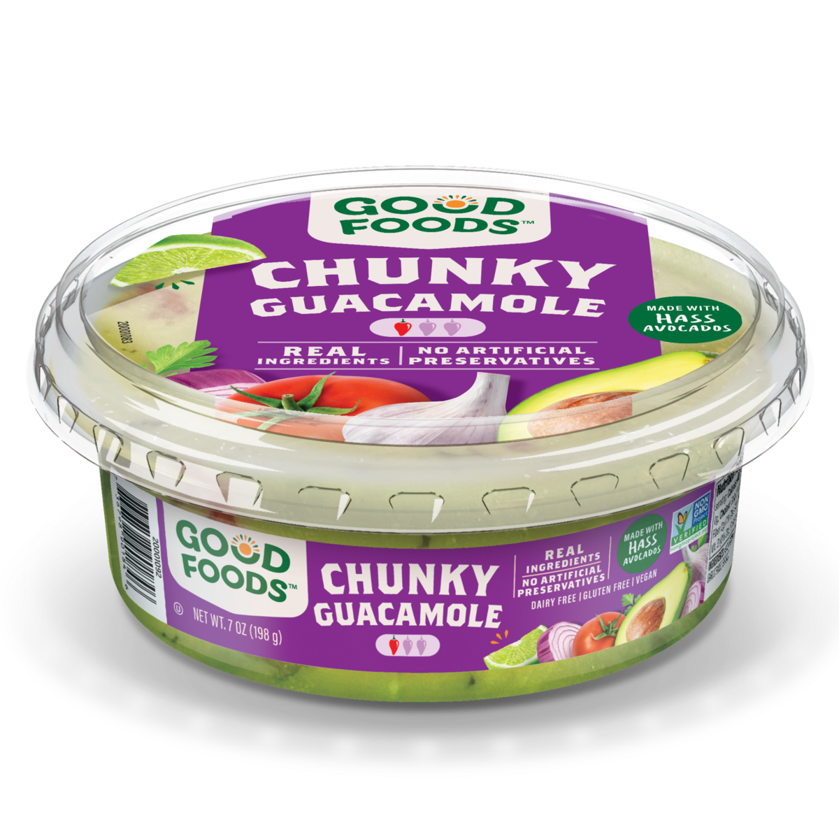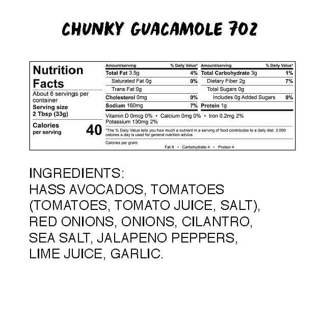 Chunky goodness and full of flavor. This simple blend of Hass avocados, tomatoes, onions, garlic, and fresh lime juice is guacamole at its purest.